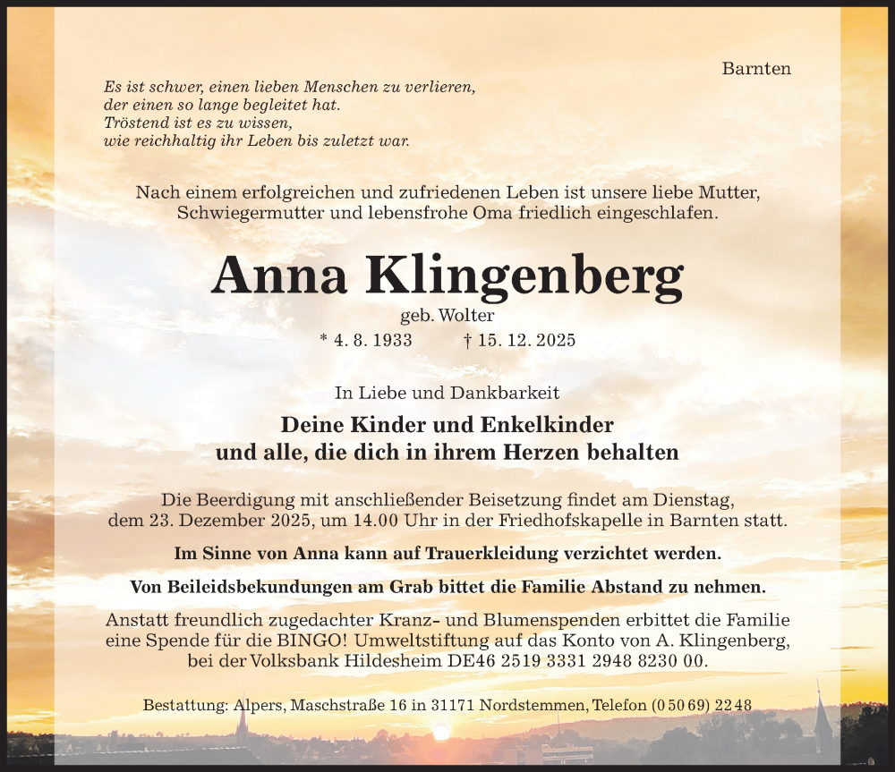 Hier finden Sie alle Traueranzeigen aus der Zeitung, die bisher für Anna Klingenberg erschienen sind. Weitere Traueranzeigen, die in der Zeitung erscheinen, werden hier ebenfalls aufgelistet