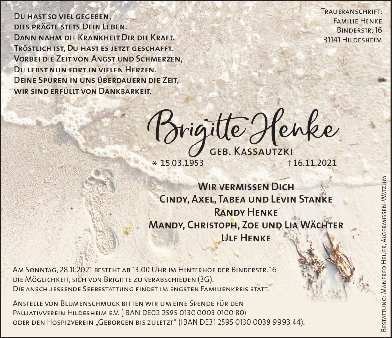 Hier finden Sie alle Traueranzeigen aus der Zeitung, die bisher für Brigitte Henke erschienen sind. Weitere Traueranzeigen, die in der Zeitung erscheinen, werden hier ebenfalls aufgelistet