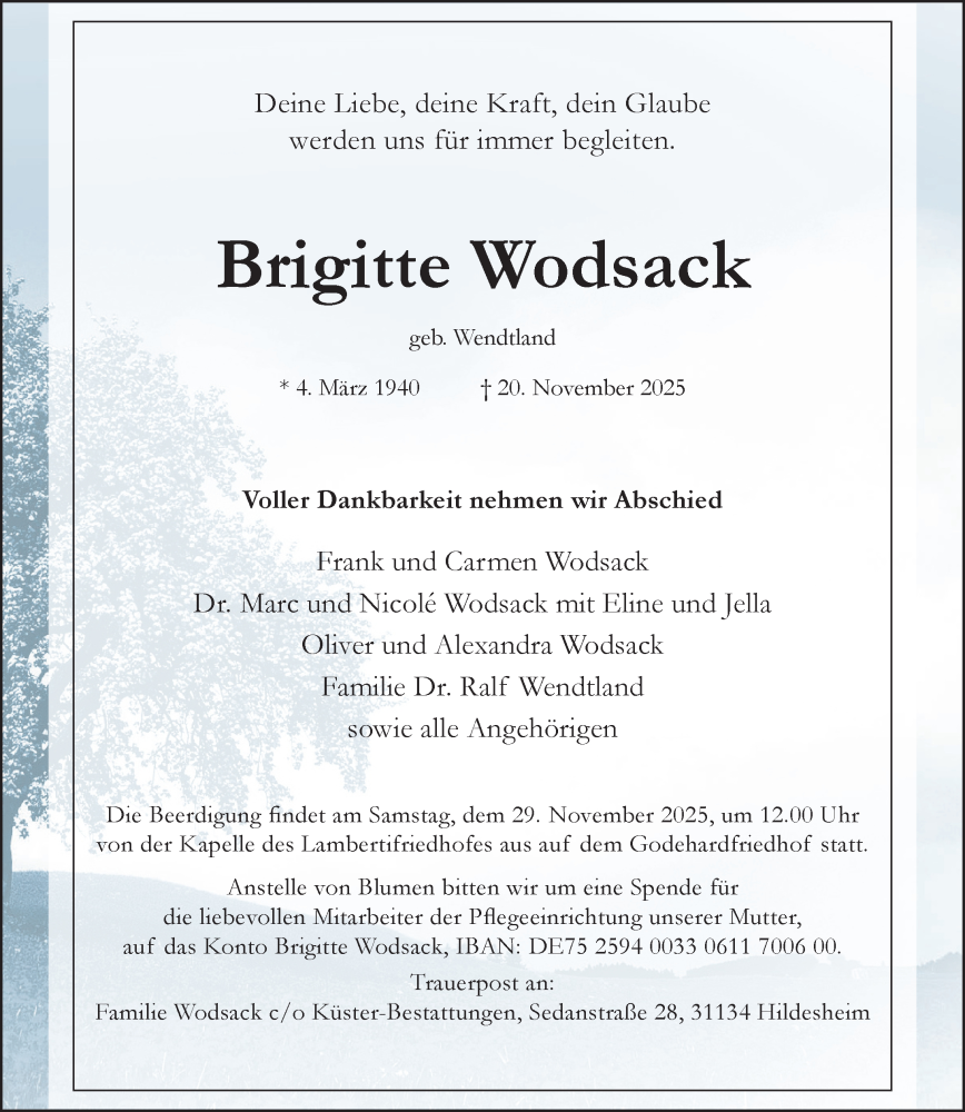 Hier finden Sie alle Traueranzeigen aus der Zeitung, die bisher für Brigitte Wodsack erschienen sind. Weitere Traueranzeigen, die in der Zeitung erscheinen, werden hier ebenfalls aufgelistet