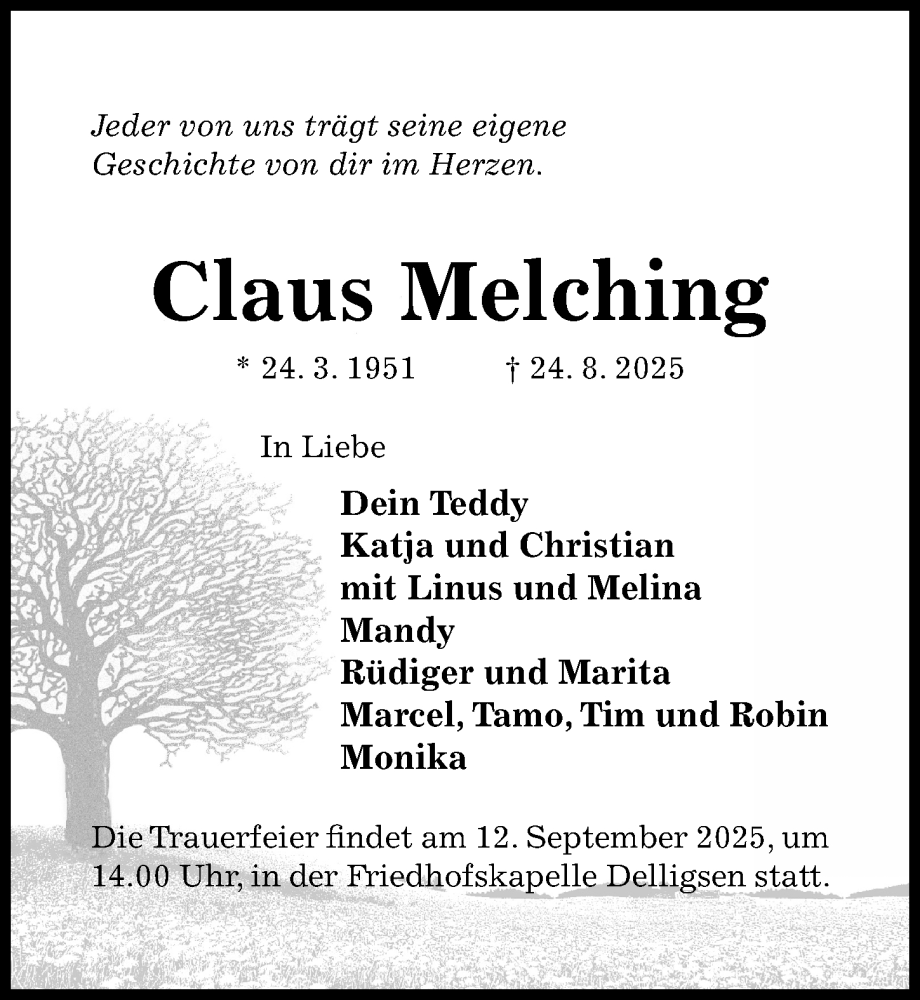 Hier finden Sie alle Traueranzeigen aus der Zeitung, die bisher für Claus Melching erschienen sind. Weitere Traueranzeigen, die in der Zeitung erscheinen, werden hier ebenfalls aufgelistet