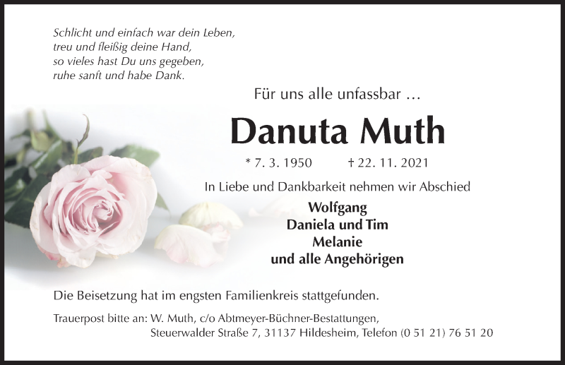 Hier finden Sie alle Traueranzeigen aus der Zeitung, die bisher für Danuta Muth erschienen sind. Weitere Traueranzeigen, die in der Zeitung erscheinen, werden hier ebenfalls aufgelistet