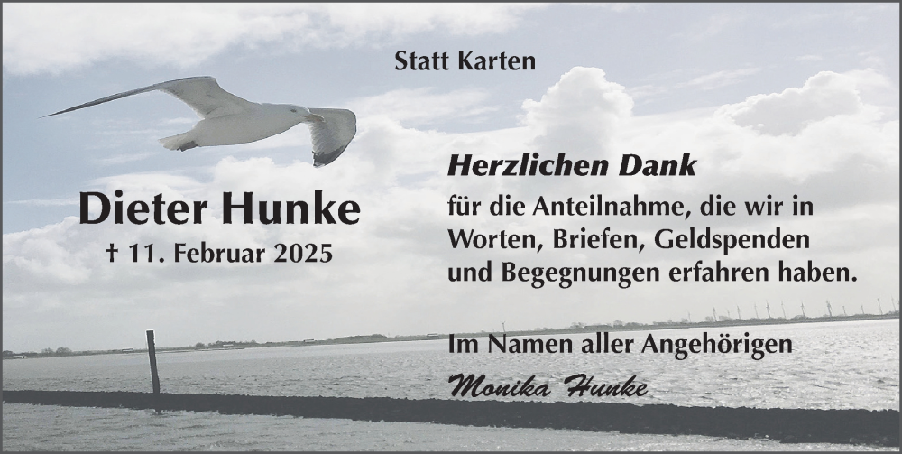 Hier finden Sie alle Traueranzeigen aus der Zeitung, die bisher für Dieter Hunke erschienen sind. Weitere Traueranzeigen, die in der Zeitung erscheinen, werden hier ebenfalls aufgelistet