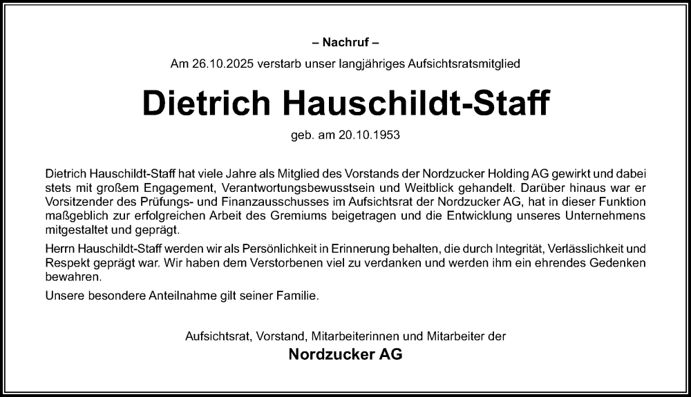 Hier finden Sie alle Traueranzeigen aus der Zeitung, die bisher für Dietrich Hauschildt-Staff erschienen sind. Weitere Traueranzeigen, die in der Zeitung erscheinen, werden hier ebenfalls aufgelistet