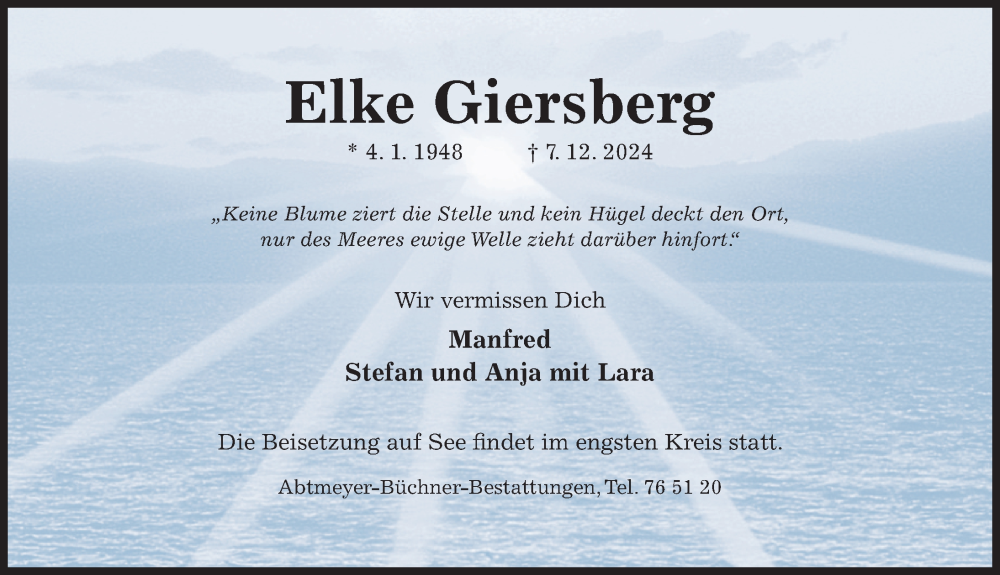 Hier finden Sie alle Traueranzeigen aus der Zeitung, die bisher für Elke Giersberg erschienen sind. Weitere Traueranzeigen, die in der Zeitung erscheinen, werden hier ebenfalls aufgelistet