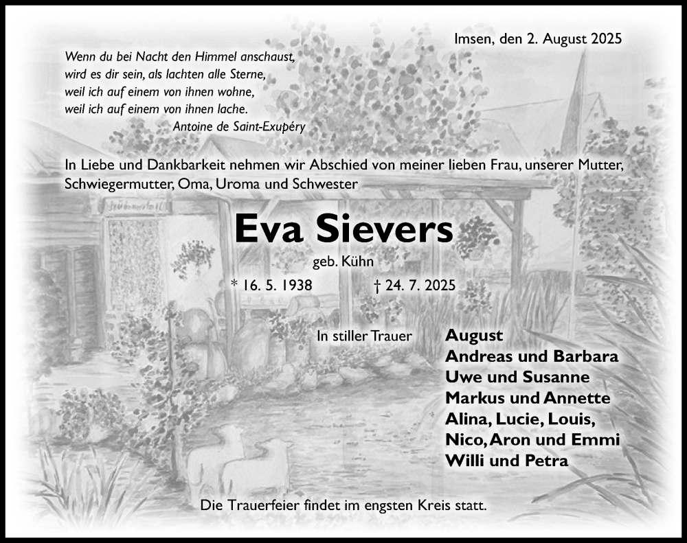 Hier finden Sie alle Traueranzeigen aus der Zeitung, die bisher für Eva Sievers erschienen sind. Weitere Traueranzeigen, die in der Zeitung erscheinen, werden hier ebenfalls aufgelistet