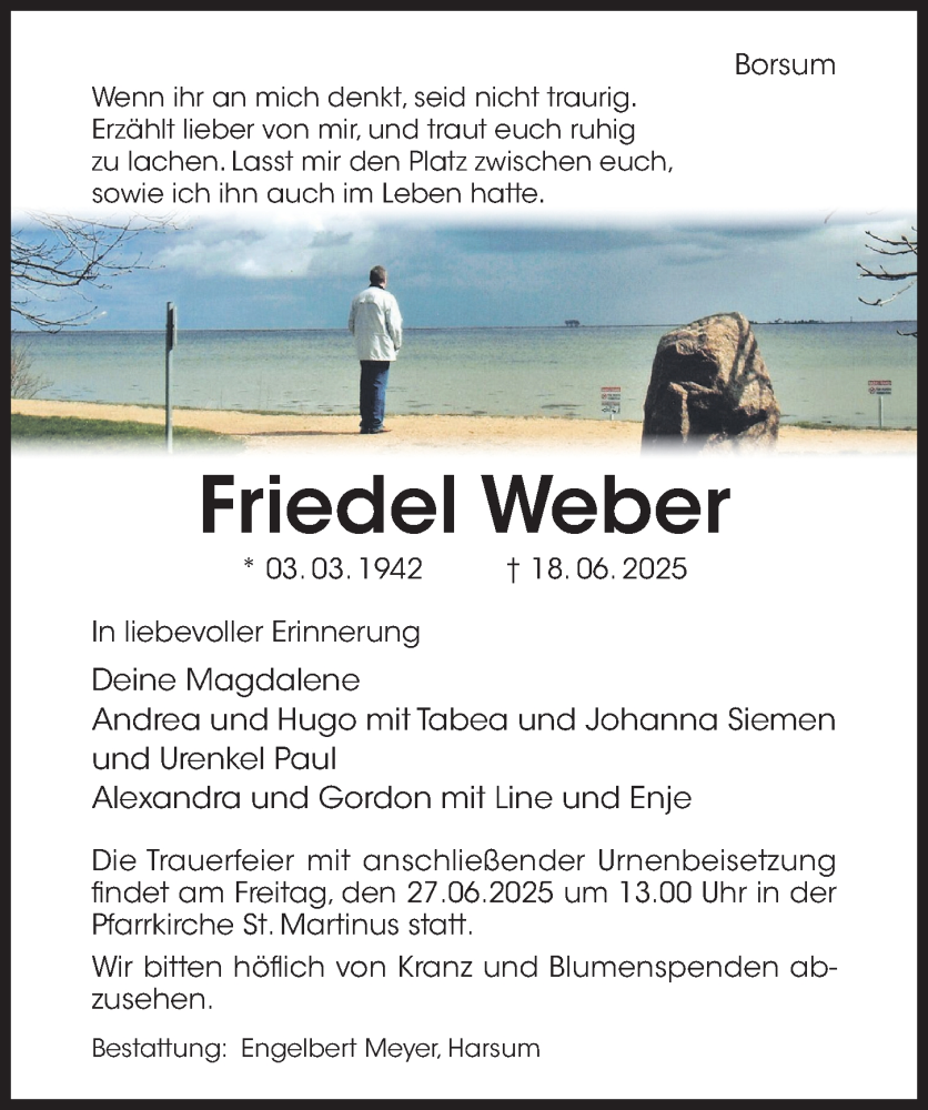 Hier finden Sie alle Traueranzeigen aus der Zeitung, die bisher für Friedel Weber erschienen sind. Weitere Traueranzeigen, die in der Zeitung erscheinen, werden hier ebenfalls aufgelistet