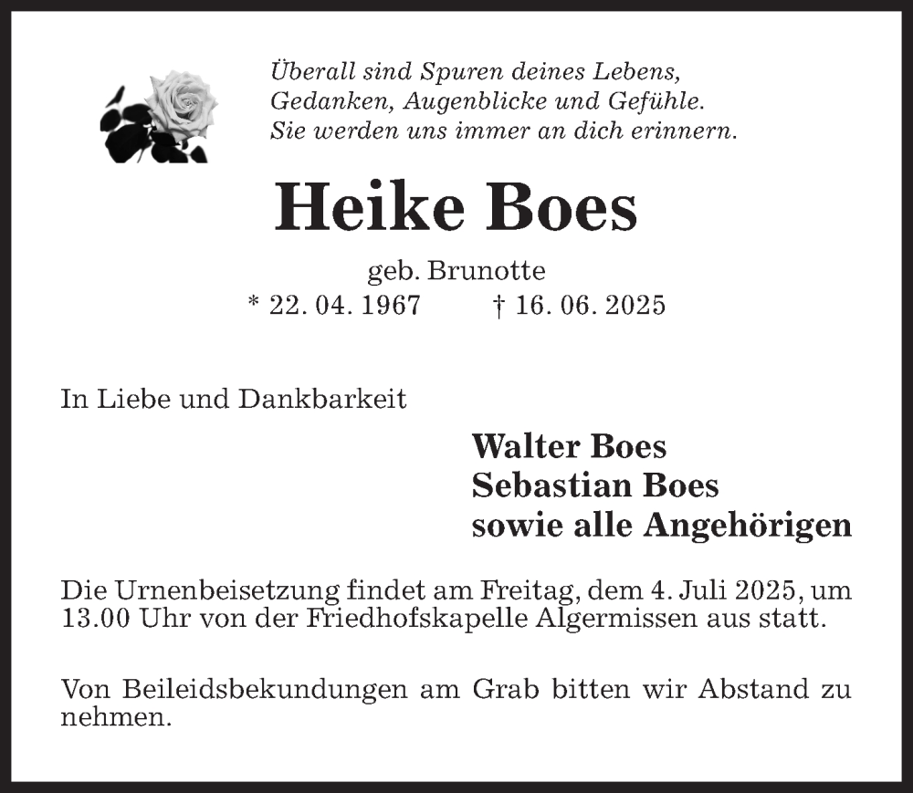 Hier finden Sie alle Traueranzeigen aus der Zeitung, die bisher für Heike Boes erschienen sind. Weitere Traueranzeigen, die in der Zeitung erscheinen, werden hier ebenfalls aufgelistet