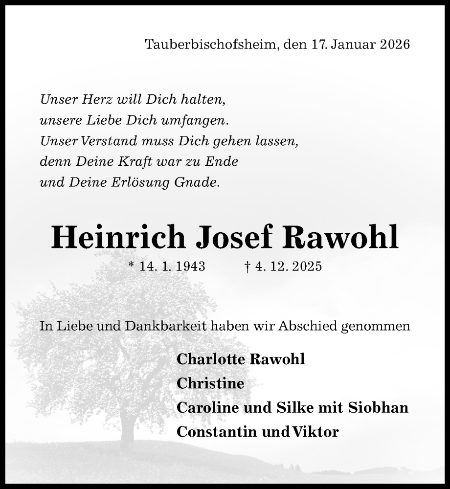 Hier finden Sie alle Traueranzeigen aus der Zeitung, die bisher für Heinrich Josef Rawohl erschienen sind. Weitere Traueranzeigen, die in der Zeitung erscheinen, werden hier ebenfalls aufgelistet