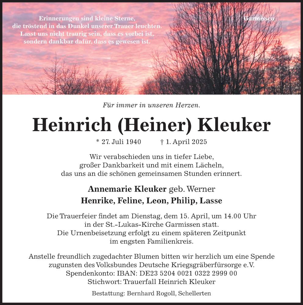 Hier finden Sie alle Traueranzeigen aus der Zeitung, die bisher für Heinrich Kleuker erschienen sind. Weitere Traueranzeigen, die in der Zeitung erscheinen, werden hier ebenfalls aufgelistet