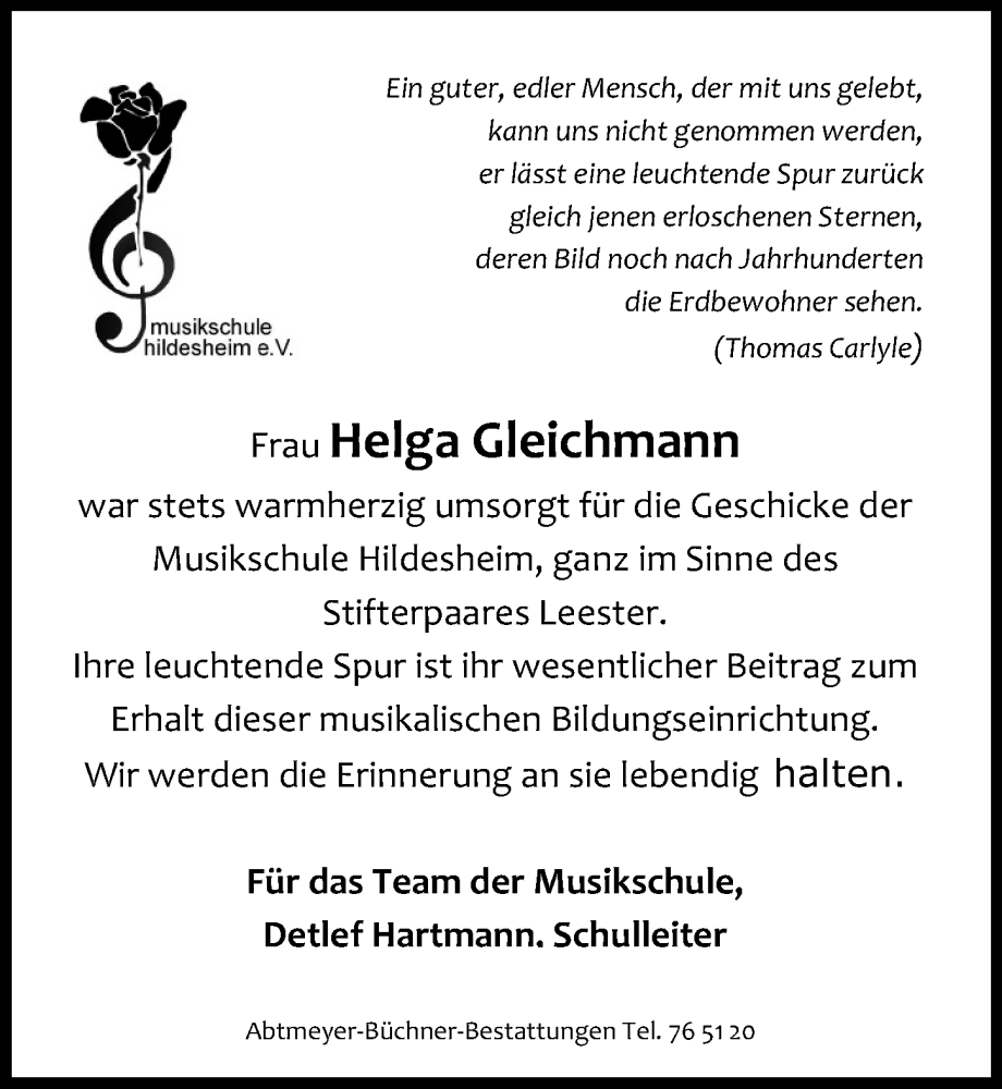Hier finden Sie alle Traueranzeigen aus der Zeitung, die bisher für Helga Gleichmann erschienen sind. Weitere Traueranzeigen, die in der Zeitung erscheinen, werden hier ebenfalls aufgelistet