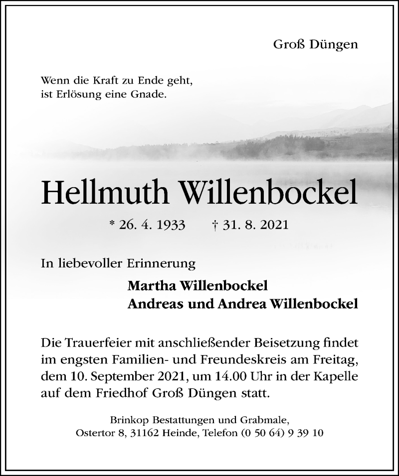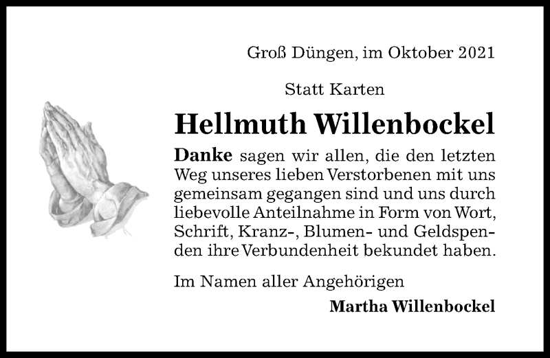 Hier finden Sie alle Traueranzeigen aus der Zeitung, die bisher für Hellmuth Willenbockel erschienen sind. Weitere Traueranzeigen, die in der Zeitung erscheinen, werden hier ebenfalls aufgelistet