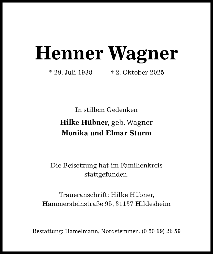 Hier finden Sie alle Traueranzeigen aus der Zeitung, die bisher für Henner Wagner erschienen sind. Weitere Traueranzeigen, die in der Zeitung erscheinen, werden hier ebenfalls aufgelistet