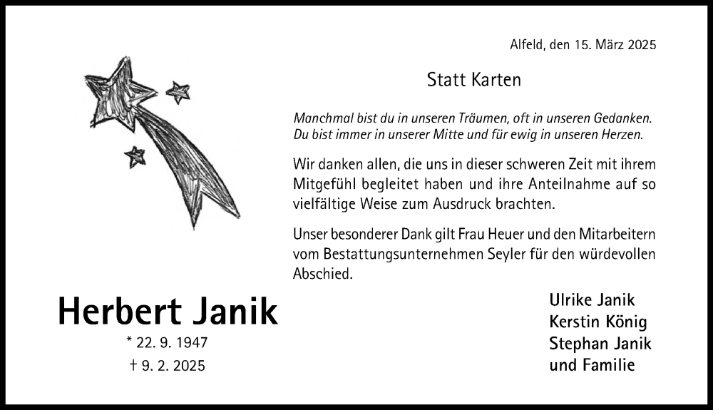 Hier finden Sie alle Traueranzeigen aus der Zeitung, die bisher für Herbert Janik erschienen sind. Weitere Traueranzeigen, die in der Zeitung erscheinen, werden hier ebenfalls aufgelistet