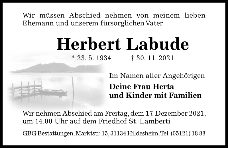 Hier finden Sie alle Traueranzeigen aus der Zeitung, die bisher für Herbert Labude erschienen sind. Weitere Traueranzeigen, die in der Zeitung erscheinen, werden hier ebenfalls aufgelistet
