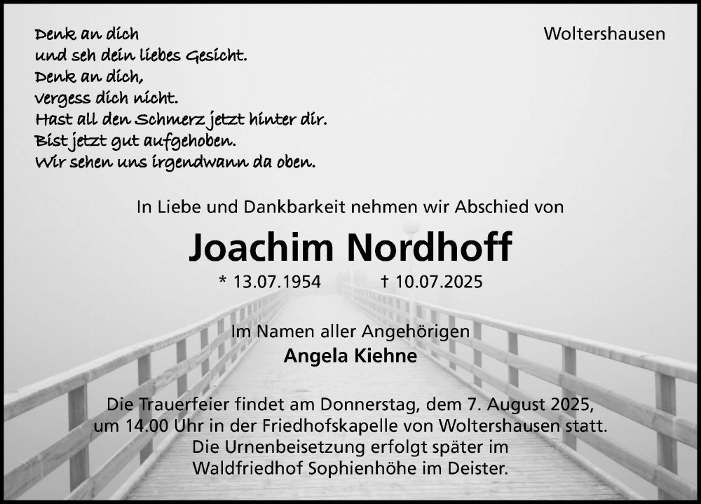 Hier finden Sie alle Traueranzeigen aus der Zeitung, die bisher für Joachim Nordhoff erschienen sind. Weitere Traueranzeigen, die in der Zeitung erscheinen, werden hier ebenfalls aufgelistet