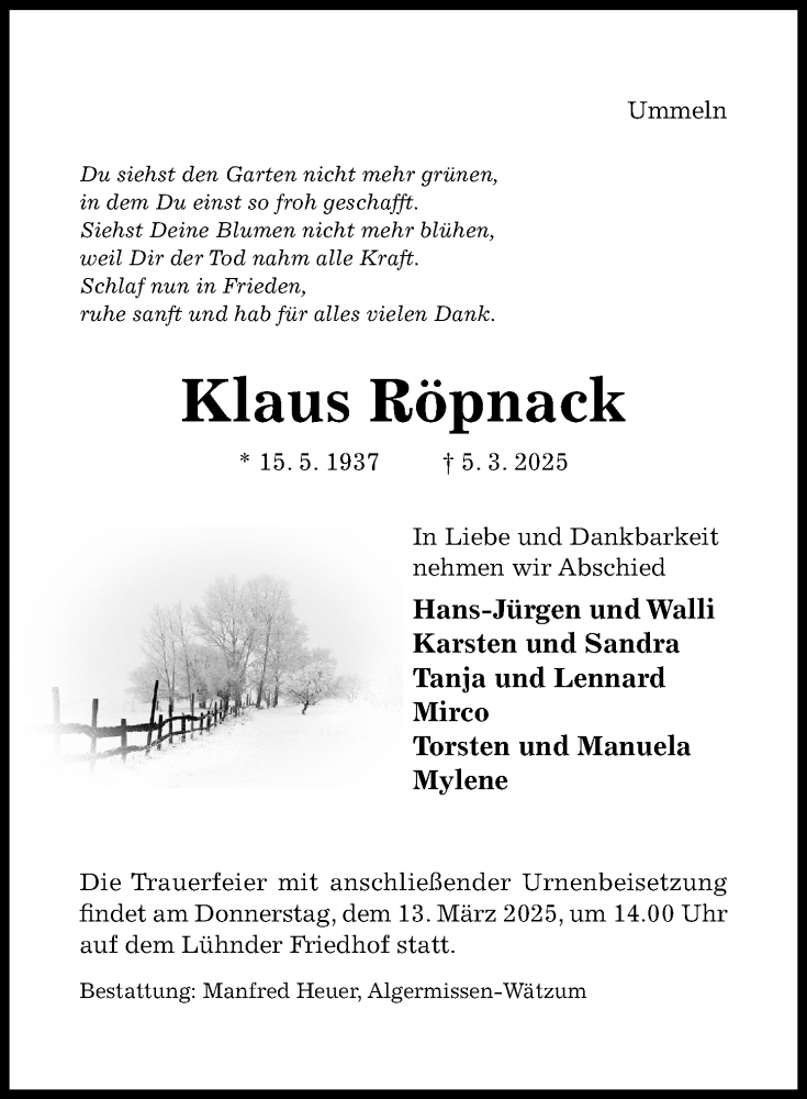 Hier finden Sie alle Traueranzeigen aus der Zeitung, die bisher für Klaus Röpnack erschienen sind. Weitere Traueranzeigen, die in der Zeitung erscheinen, werden hier ebenfalls aufgelistet