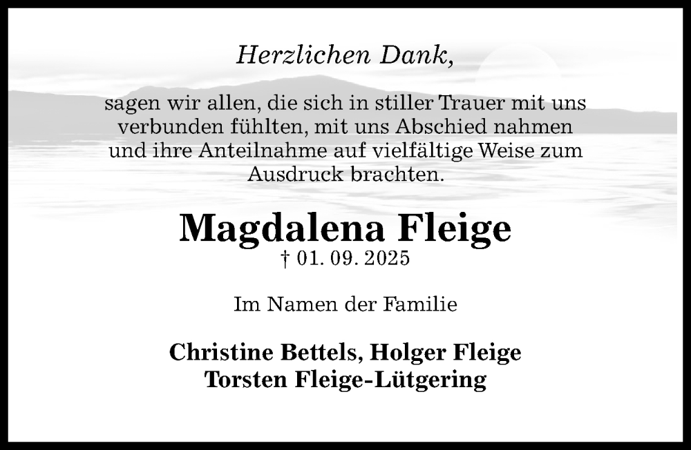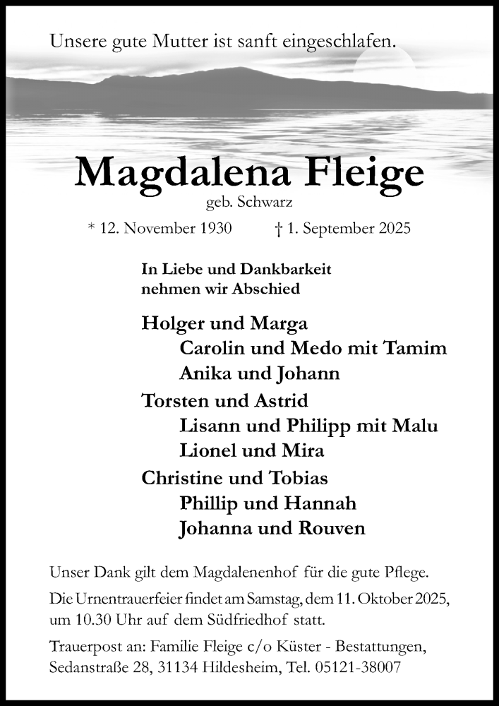 Hier finden Sie alle Traueranzeigen aus der Zeitung, die bisher für Magdalena Fleige erschienen sind. Weitere Traueranzeigen, die in der Zeitung erscheinen, werden hier ebenfalls aufgelistet