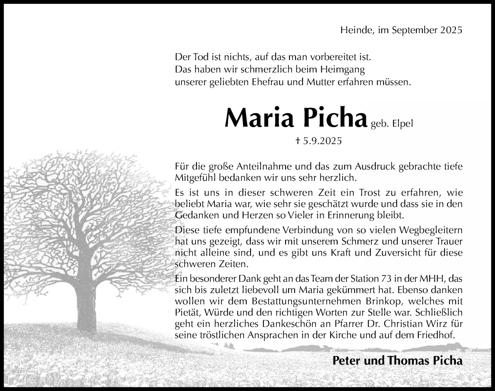 Hier finden Sie alle Traueranzeigen aus der Zeitung, die bisher für Maria Picha erschienen sind. Weitere Traueranzeigen, die in der Zeitung erscheinen, werden hier ebenfalls aufgelistet