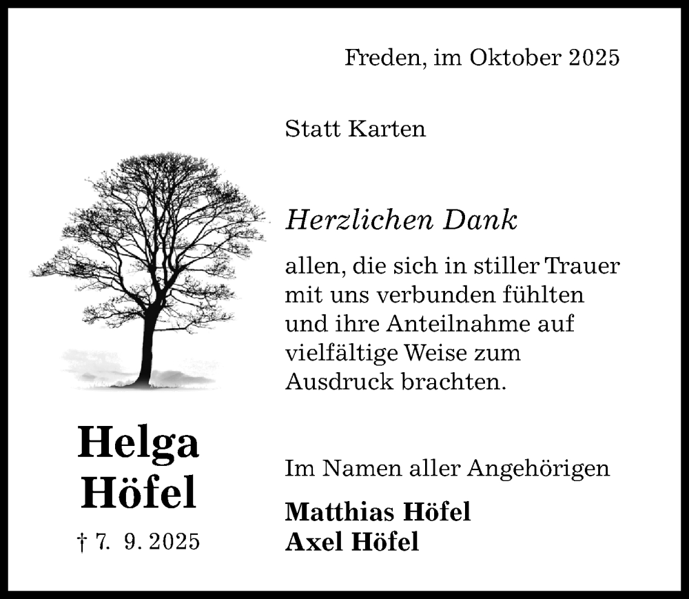 Hier finden Sie alle Traueranzeigen aus der Zeitung, die bisher für Matthias Höfel erschienen sind. Weitere Traueranzeigen, die in der Zeitung erscheinen, werden hier ebenfalls aufgelistet