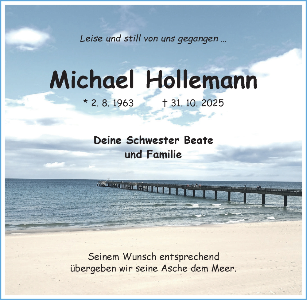 Hier finden Sie alle Traueranzeigen aus der Zeitung, die bisher für Michael Hollemann erschienen sind. Weitere Traueranzeigen, die in der Zeitung erscheinen, werden hier ebenfalls aufgelistet