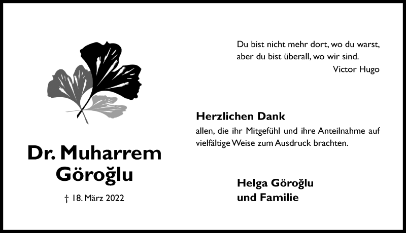 Hier finden Sie alle Traueranzeigen aus der Zeitung, die bisher für Muharrem Göroglu erschienen sind. Weitere Traueranzeigen, die in der Zeitung erscheinen, werden hier ebenfalls aufgelistet