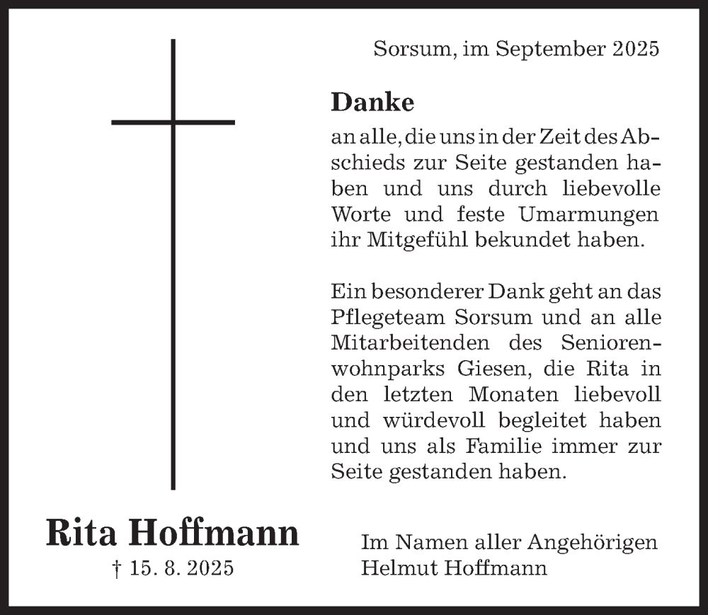 Hier finden Sie alle Traueranzeigen aus der Zeitung, die bisher für Rita Hoffmann erschienen sind. Weitere Traueranzeigen, die in der Zeitung erscheinen, werden hier ebenfalls aufgelistet