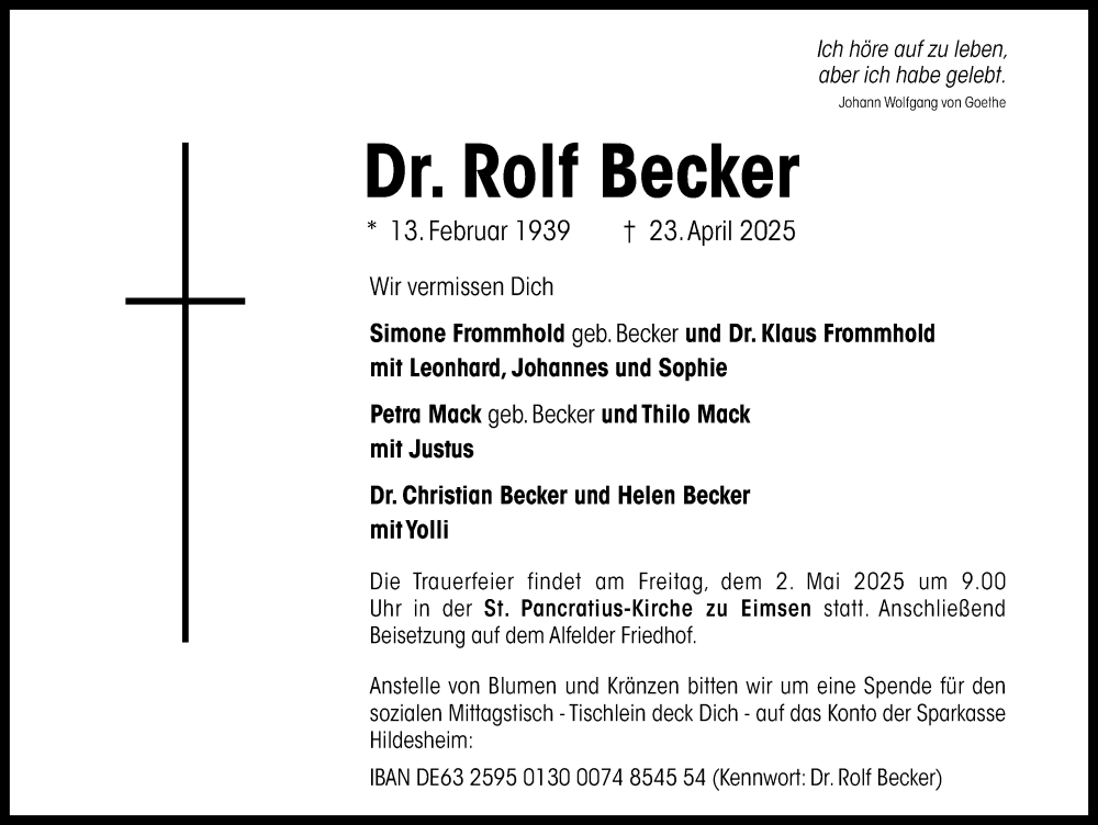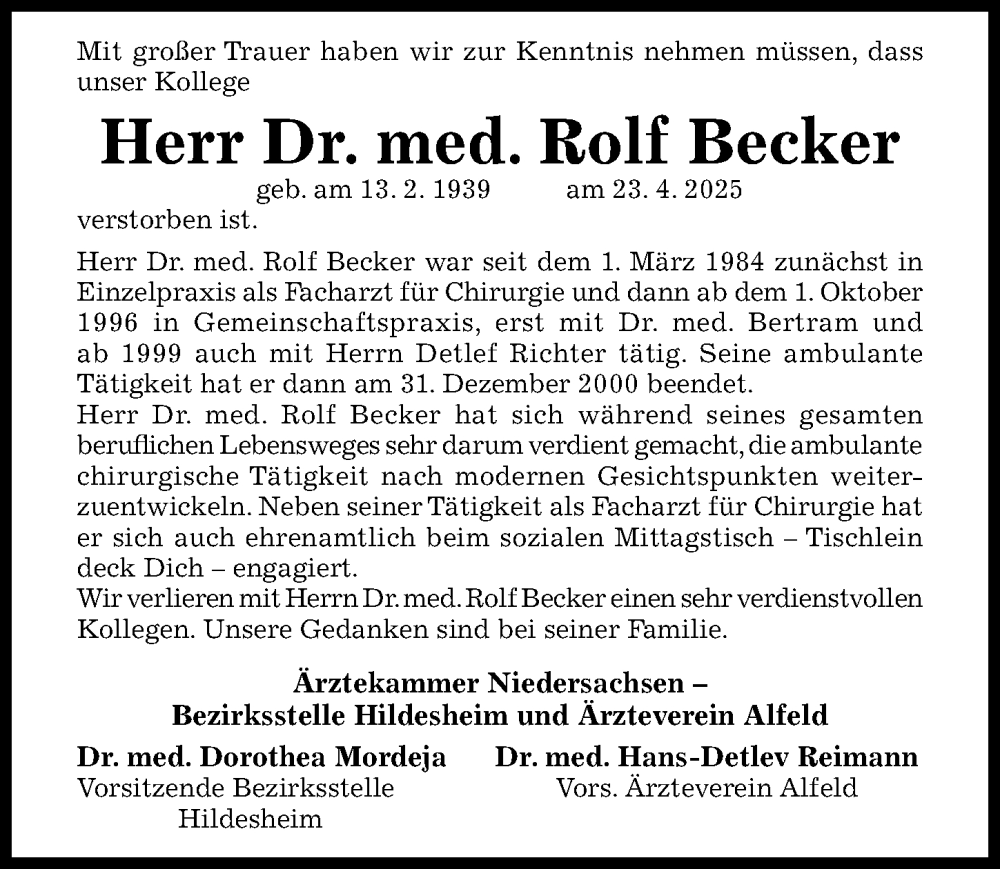 Hier finden Sie alle Traueranzeigen aus der Zeitung, die bisher für Rolf Becker erschienen sind. Weitere Traueranzeigen, die in der Zeitung erscheinen, werden hier ebenfalls aufgelistet