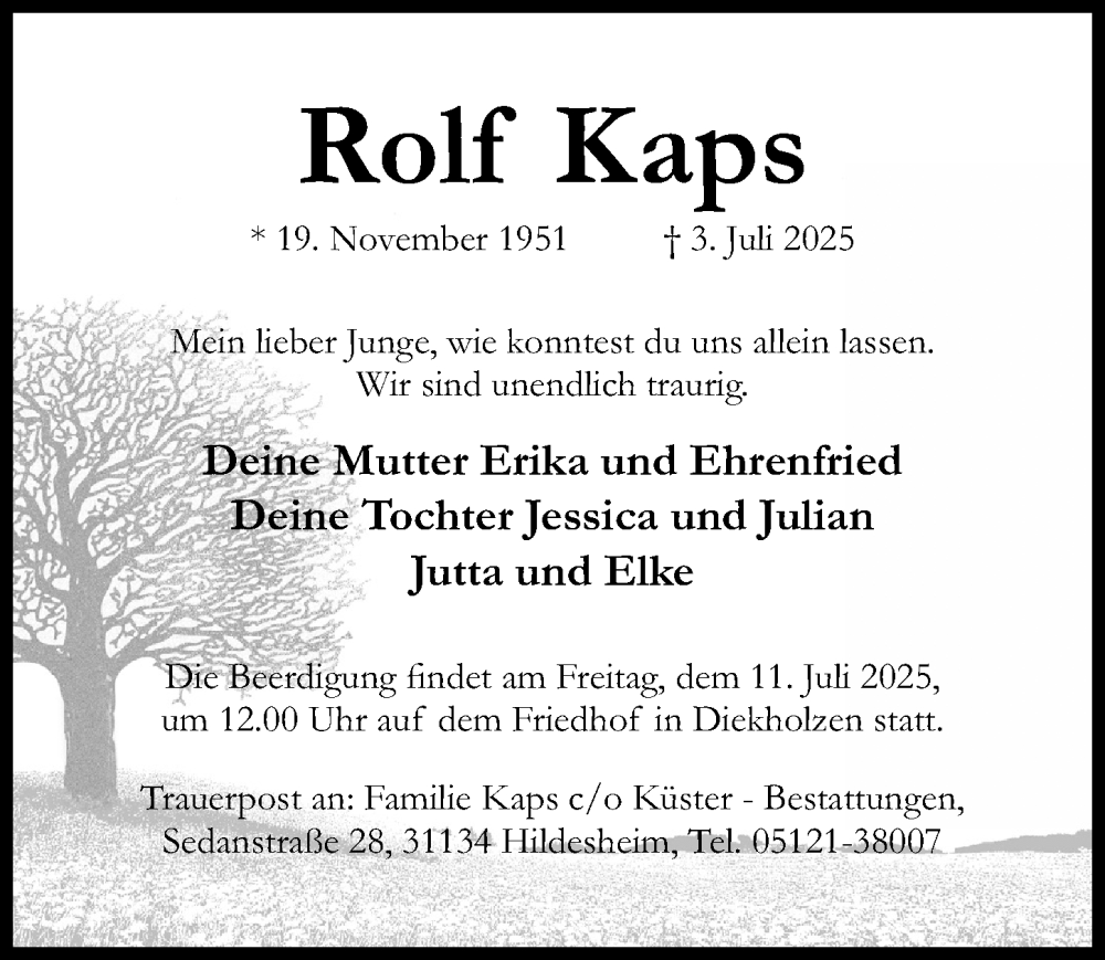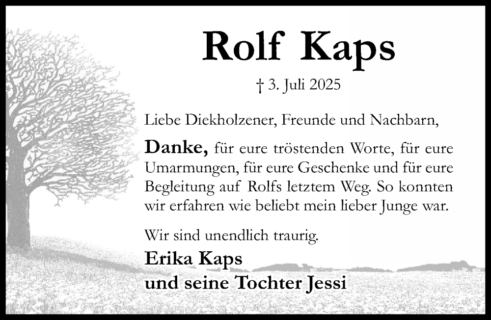 Hier finden Sie alle Traueranzeigen aus der Zeitung, die bisher für Rolf Kaps erschienen sind. Weitere Traueranzeigen, die in der Zeitung erscheinen, werden hier ebenfalls aufgelistet