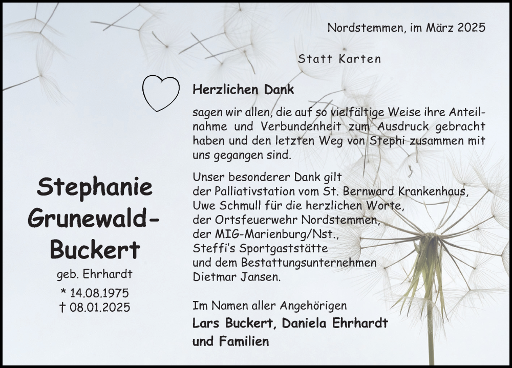 Hier finden Sie alle Traueranzeigen aus der Zeitung, die bisher für Stephanie Grunewald-Buckert erschienen sind. Weitere Traueranzeigen, die in der Zeitung erscheinen, werden hier ebenfalls aufgelistet