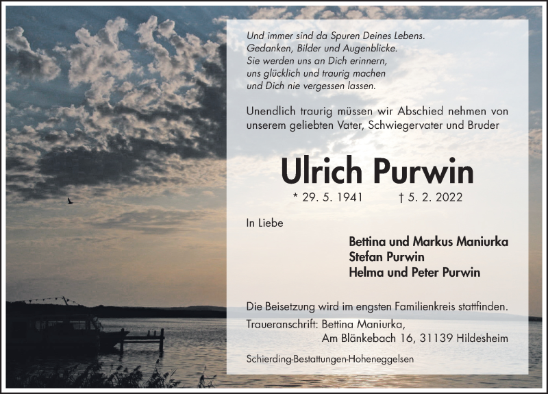 Hier finden Sie alle Traueranzeigen aus der Zeitung, die bisher für Ulrich Purwin erschienen sind. Weitere Traueranzeigen, die in der Zeitung erscheinen, werden hier ebenfalls aufgelistet