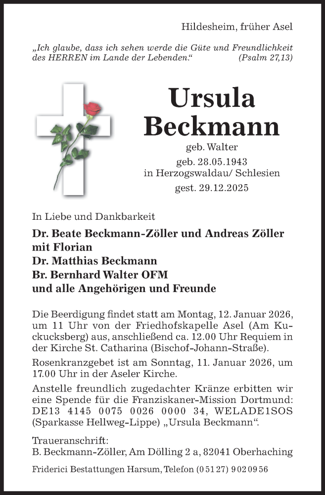 Hier finden Sie alle Traueranzeigen aus der Zeitung, die bisher für Ursula Beckmann erschienen sind. Weitere Traueranzeigen, die in der Zeitung erscheinen, werden hier ebenfalls aufgelistet