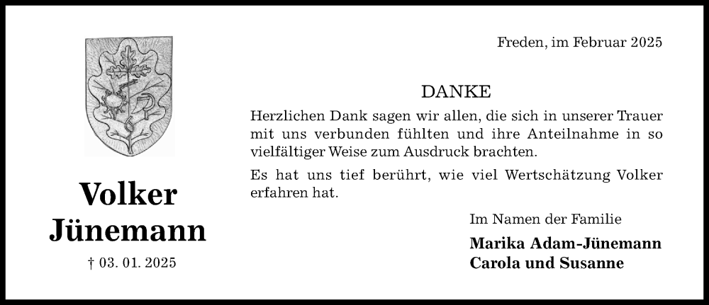 Hier finden Sie alle Traueranzeigen aus der Zeitung, die bisher für Volker Jünemann erschienen sind. Weitere Traueranzeigen, die in der Zeitung erscheinen, werden hier ebenfalls aufgelistet