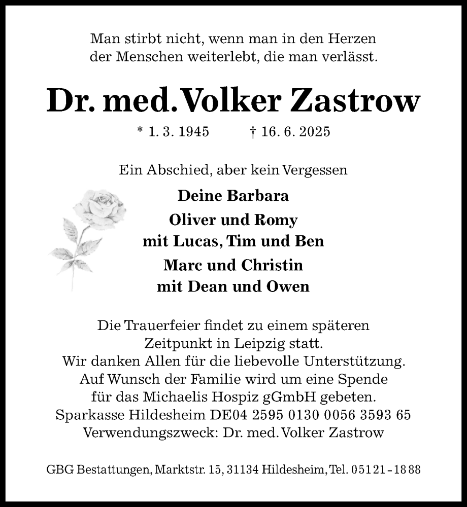 Hier finden Sie alle Traueranzeigen aus der Zeitung, die bisher für Volker Zastrow erschienen sind. Weitere Traueranzeigen, die in der Zeitung erscheinen, werden hier ebenfalls aufgelistet