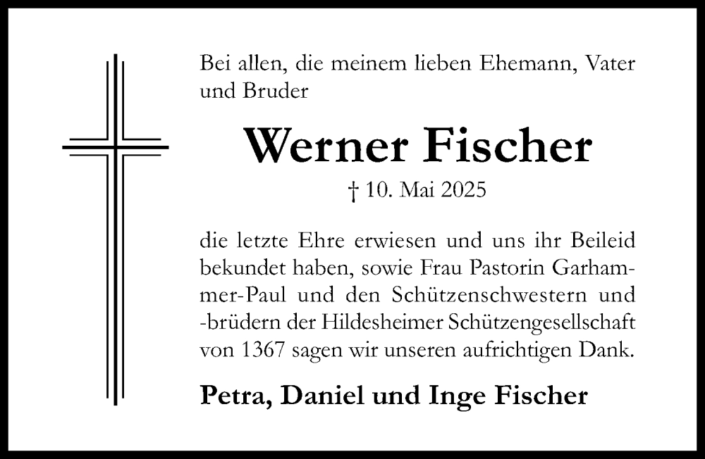 Hier finden Sie alle Traueranzeigen aus der Zeitung, die bisher für Werner Fischer erschienen sind. Weitere Traueranzeigen, die in der Zeitung erscheinen, werden hier ebenfalls aufgelistet