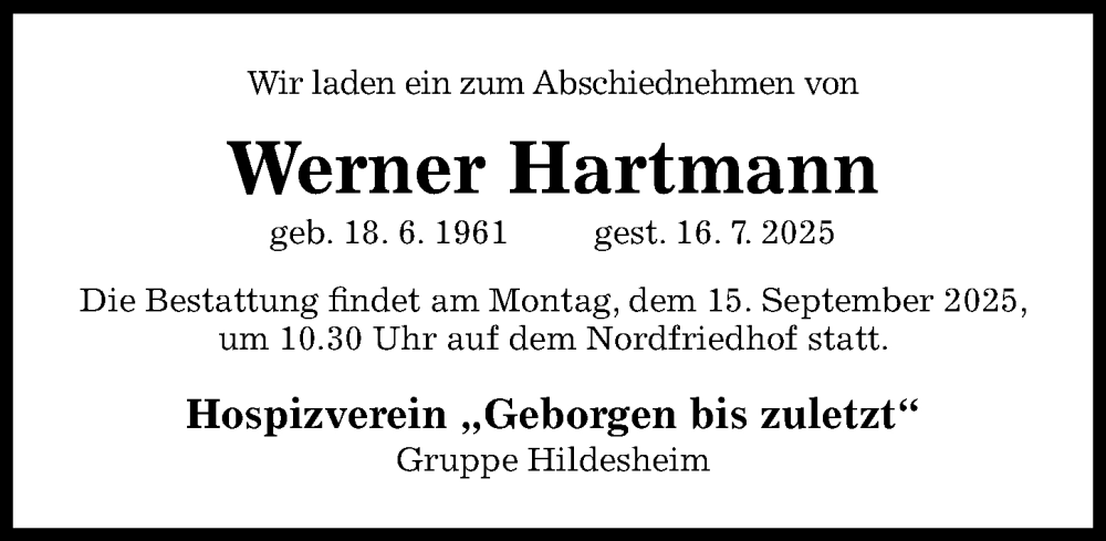 Hier finden Sie alle Traueranzeigen aus der Zeitung, die bisher für Werner Hartmann erschienen sind. Weitere Traueranzeigen, die in der Zeitung erscheinen, werden hier ebenfalls aufgelistet