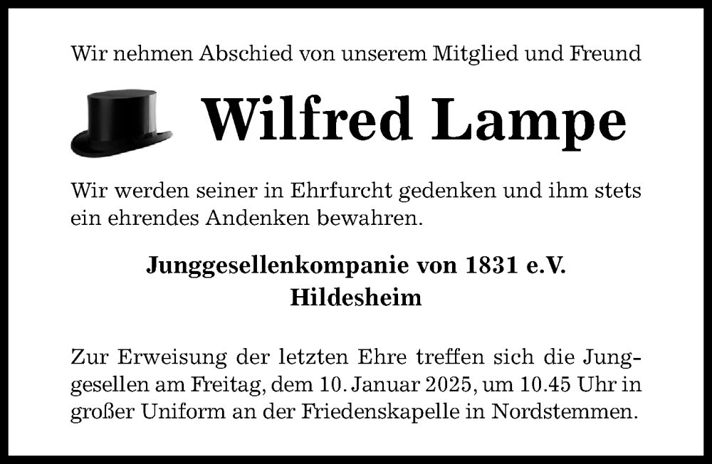 Hier finden Sie alle Traueranzeigen aus der Zeitung, die bisher für Wilfred Lampe erschienen sind. Weitere Traueranzeigen, die in der Zeitung erscheinen, werden hier ebenfalls aufgelistet