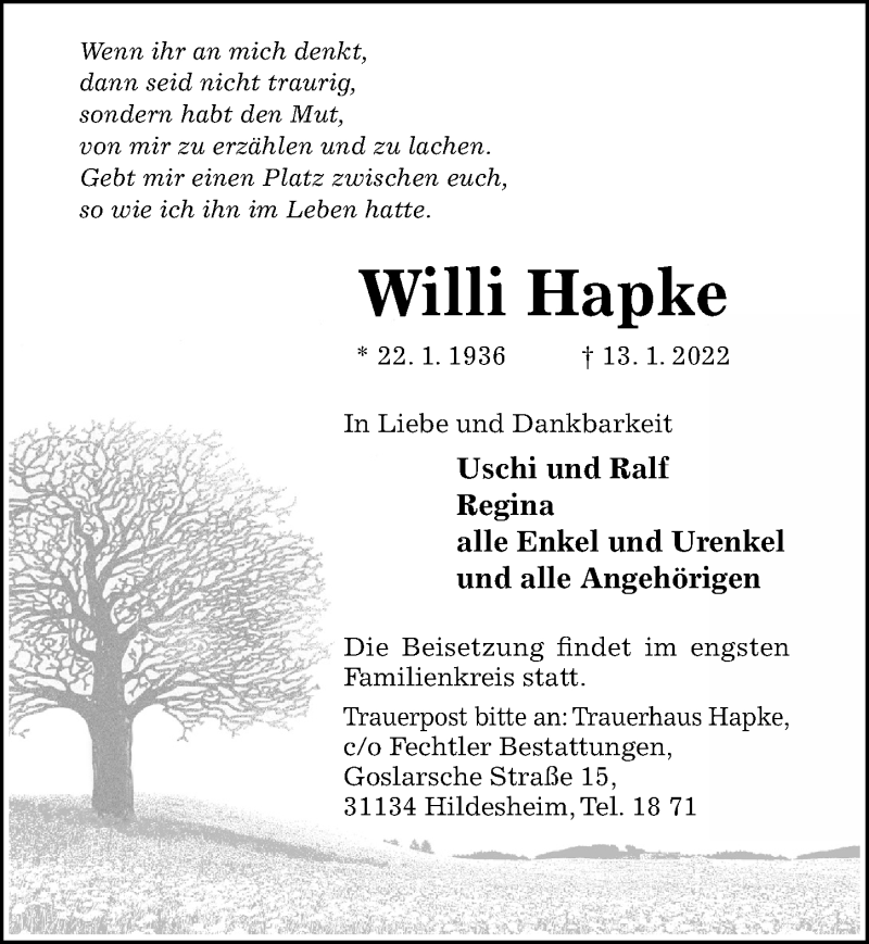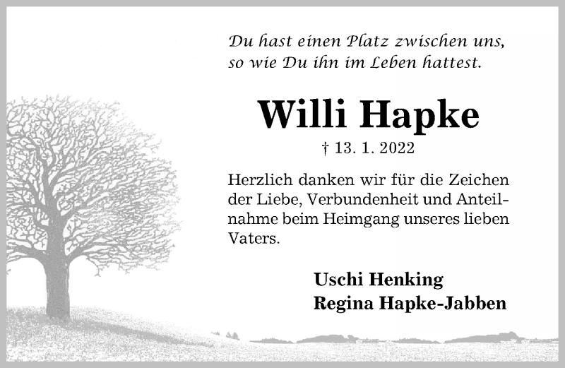 Hier finden Sie alle Traueranzeigen aus der Zeitung, die bisher für Willi Hapke erschienen sind. Weitere Traueranzeigen, die in der Zeitung erscheinen, werden hier ebenfalls aufgelistet