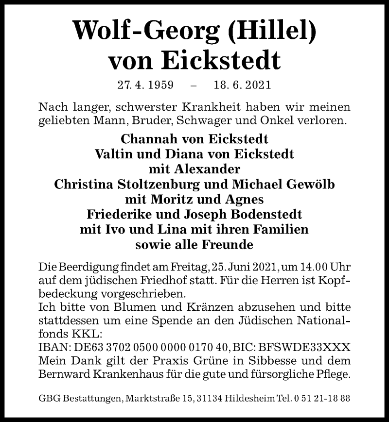 Hier finden Sie alle Traueranzeigen aus der Zeitung, die bisher für Wolf-Georg von Eickstedt erschienen sind. Weitere Traueranzeigen, die in der Zeitung erscheinen, werden hier ebenfalls aufgelistet