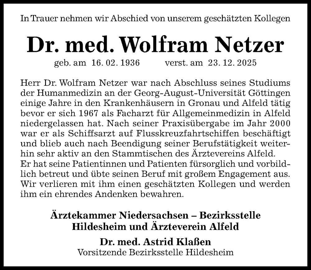 Hier finden Sie alle Traueranzeigen aus der Zeitung, die bisher für Wolfram Netzer erschienen sind. Weitere Traueranzeigen, die in der Zeitung erscheinen, werden hier ebenfalls aufgelistet